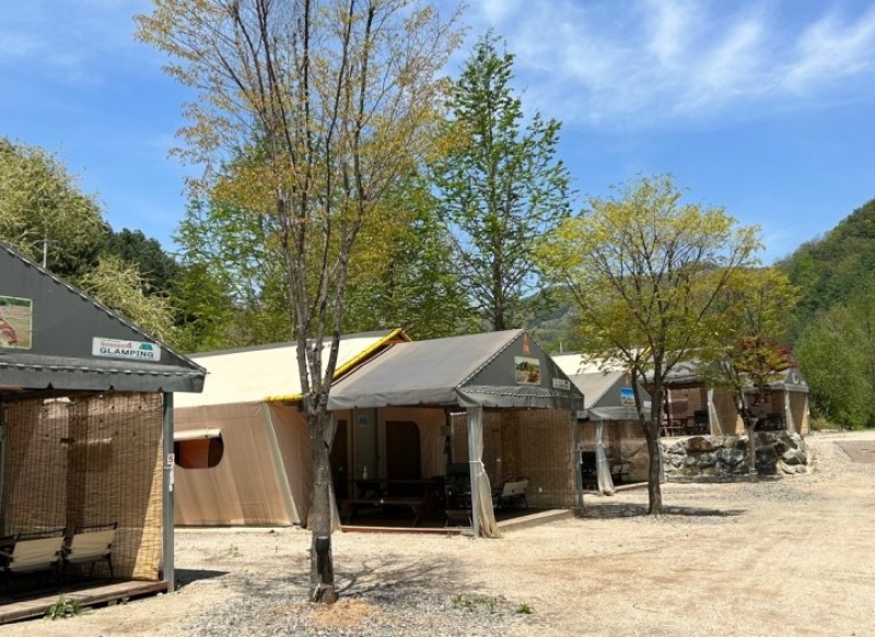 유럽풍의 실내펜션과 글램핑장이 함께 있습니다. |